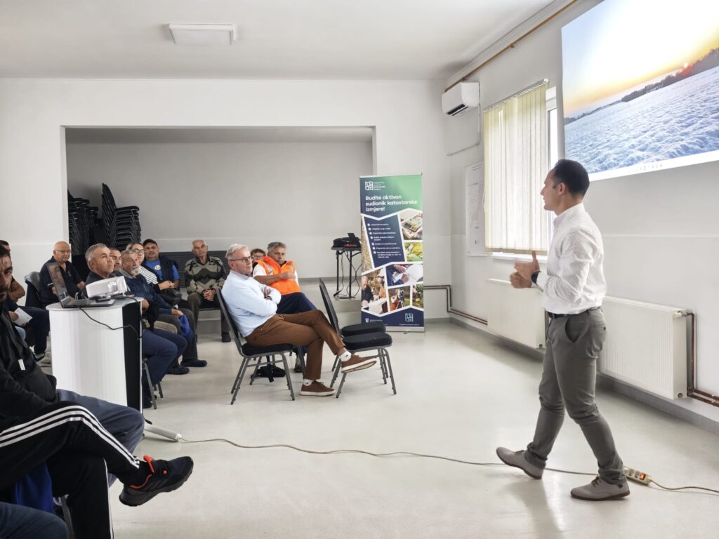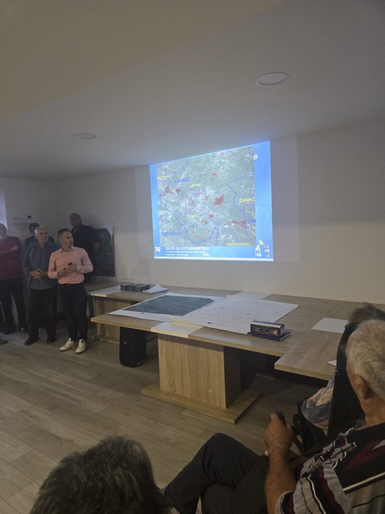 Predstavnici Zavoda za fotogrametriju upoznali su prisutne s procesom izmjere te važnosti točnog označavanja međa i suradnje građana tijekom provedbe radova.